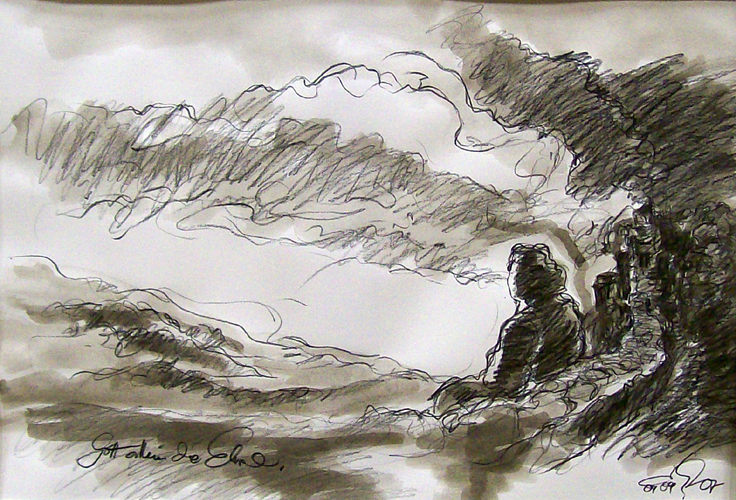 > zurück > | Johannes Brahms: Ein deutsches Requiem | Schönberger Musiksommer 2007 | Zeichnung/Sepia 59,4 x 42cm (c)Helmut Preller >| |