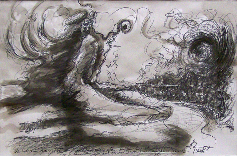 > zurück > | Johannes Brahms: Ein deutsches Requiem | Schönberger Musiksommer 2007 | Zeichnung/Sepia 59,4 x 42cm (c)Helmut Preller >| |