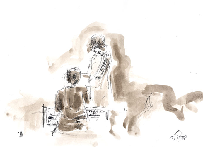 Ondist bedient mit der rechten Hand die Tastatur oder das