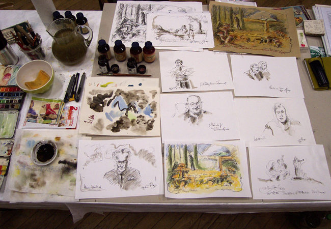 Zeichnung mit Sepia - Varianten auch mit Aquarell und Kreide